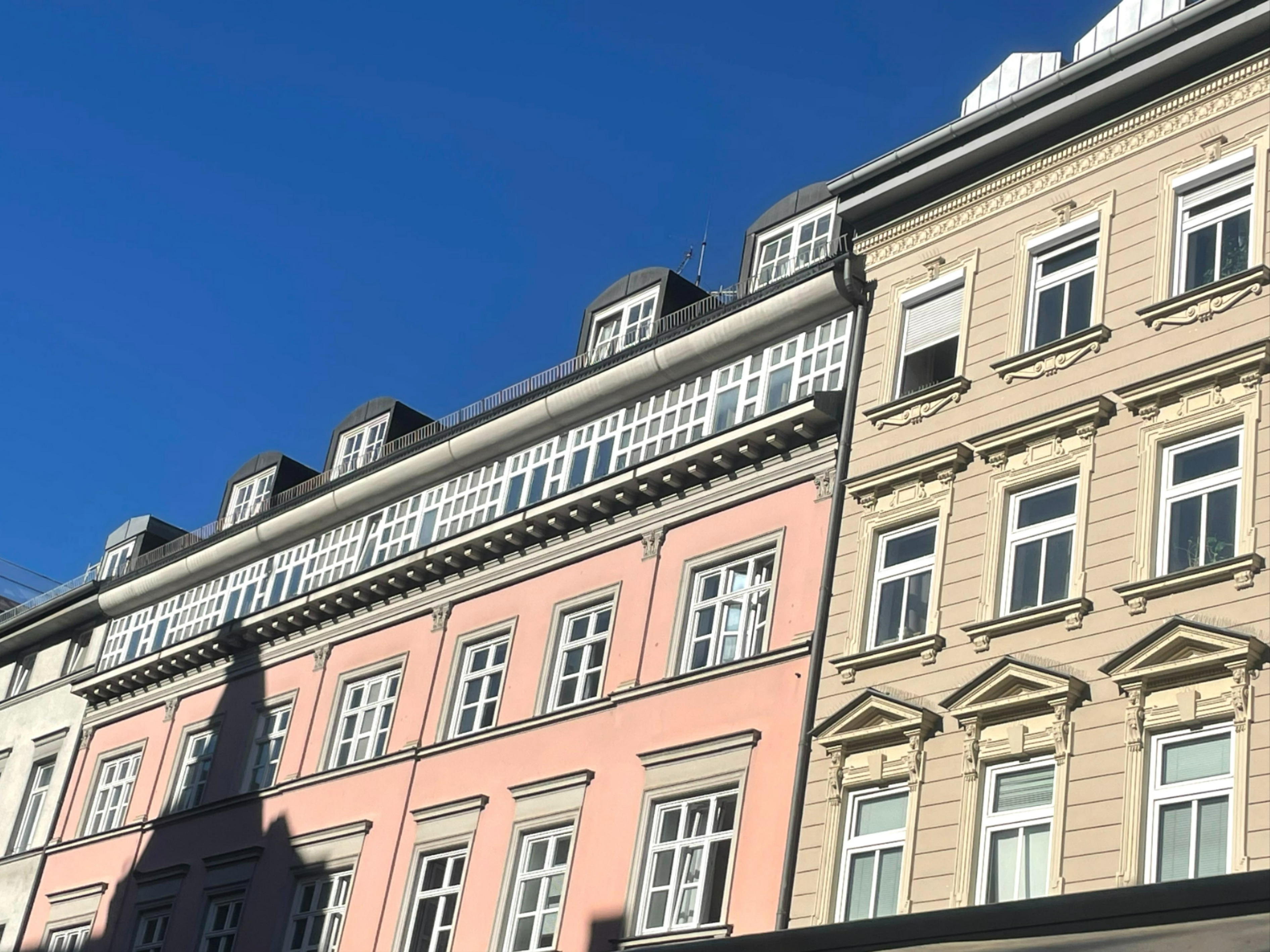 Das Objekt befindet sich im vierten Stock eines denkmalgeschützte Altbaus, der im Jahr 1985 aufgestockt wurde. Das Gebäude ist mit einem Aufzug ausgestattet.